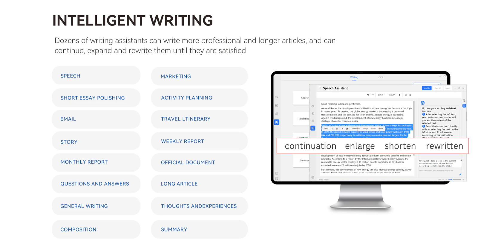 Use voice typing for documents. AI helps with Excel formulas, charts, and translating reports or letters.